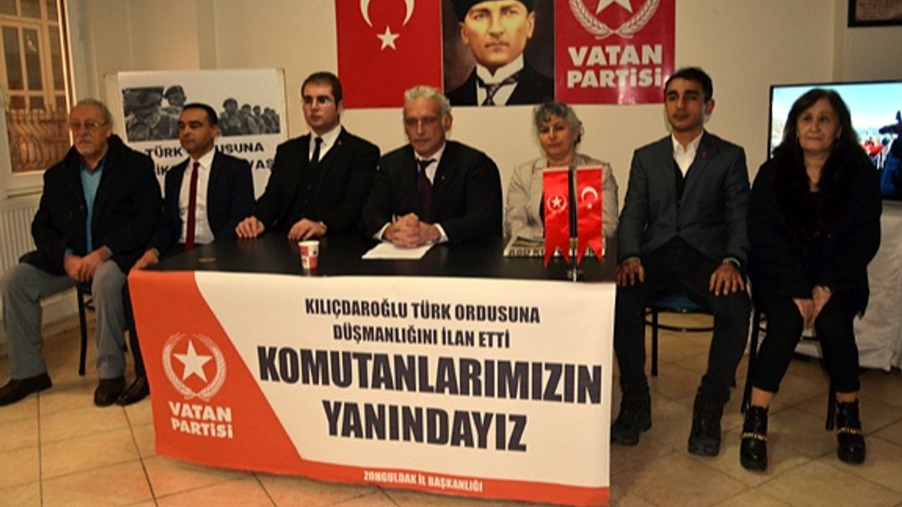 Vatan Partisi Zonguldak İl Başkanı Gökhan Yılmaz yaptığı açıklamada, “Kemal Kılıçdaroğlu’nun 10 Ocak 2023 günü Meclis kürsüsünden Türk Ordusuna, Türk Komutanına hakaretler ederek düşmanlığını ilan etmesiyle birlikte ABD’nin içimizdeki bütün kuvvetleri, Türk Ordusuna karşı savaş açmıştır” dedi.