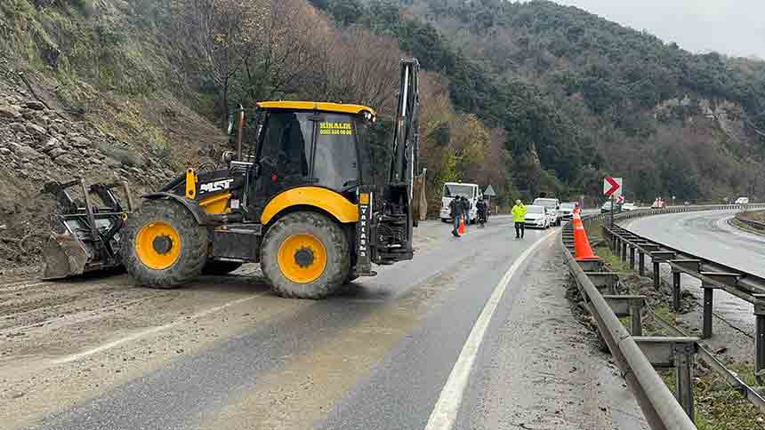 Olay, sabah saat 07.40 sıralarında Karadeniz Ereğli ile Alaplı ilçelerini birbirine bağlayan kara yolunun Tersaneler mevkiinde yaşandı. Yağışların etkisiyle yamaçtan kopan toprak ve kaya parçaları yolu tamamen kapladı.