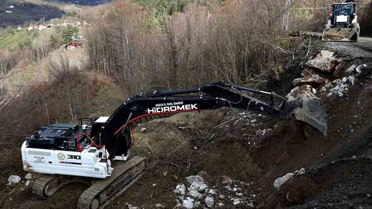 Özel İdaresi Yol ve Ulaşım Hizmetleri Müdürlüğü ile Kaynaşlı İlçe Özel İdare Müdürlüğü ekipleri tarafından yürütülen çalışmalar kapsamında zemin güçlendirme, taş tahkimatı ve dolgu işlemleri titizlikle tamamlandı. Yapılan uygulamalarla birlikte yol platformu yeniden güvenli hale getirildi.
