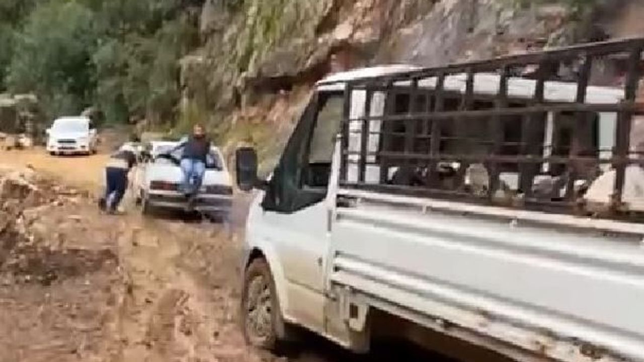 Görüntülerde araçların çamurla kaplı yolda ilerlemekte güçlük çektiği, bir başka aracın kaymaması için bagaj kısmına bir kişinin oturduğu dikkat çekti. Yaşananlar adeta offroad yarışlarını aratmadı.