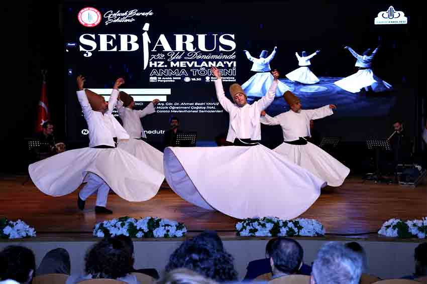 Anma programında Dildâde Türk Müziği Topluluğu, Türk tasavvuf musikisinin seçkin eserlerini seslendirdi. Ardından Galata Mevlevihanesi Semazenleri tarafından gerçekleştirilen sema gösterisi, izleyicilerden büyük beğeni topladı ve manevi bir atmosfer oluşturdu.