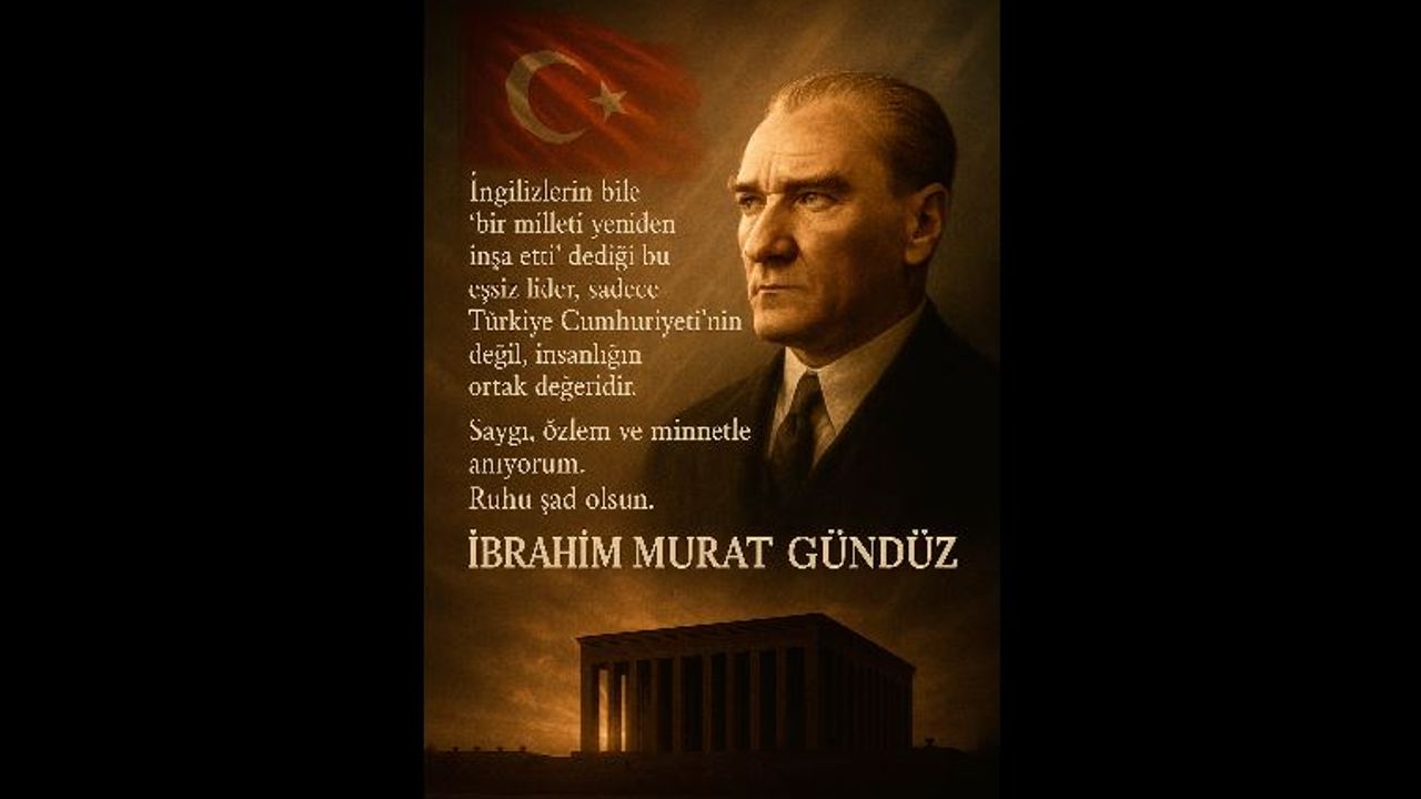 İş insanı ve spor camiasının tanınan ismi İbrahim Murat Gündüz, Ulu Önder Gazi Mustafa Kemal Atatürk’ün ebediyete intikalinin yıl dönümünde anlamlı bir mesaj yayımladı.
