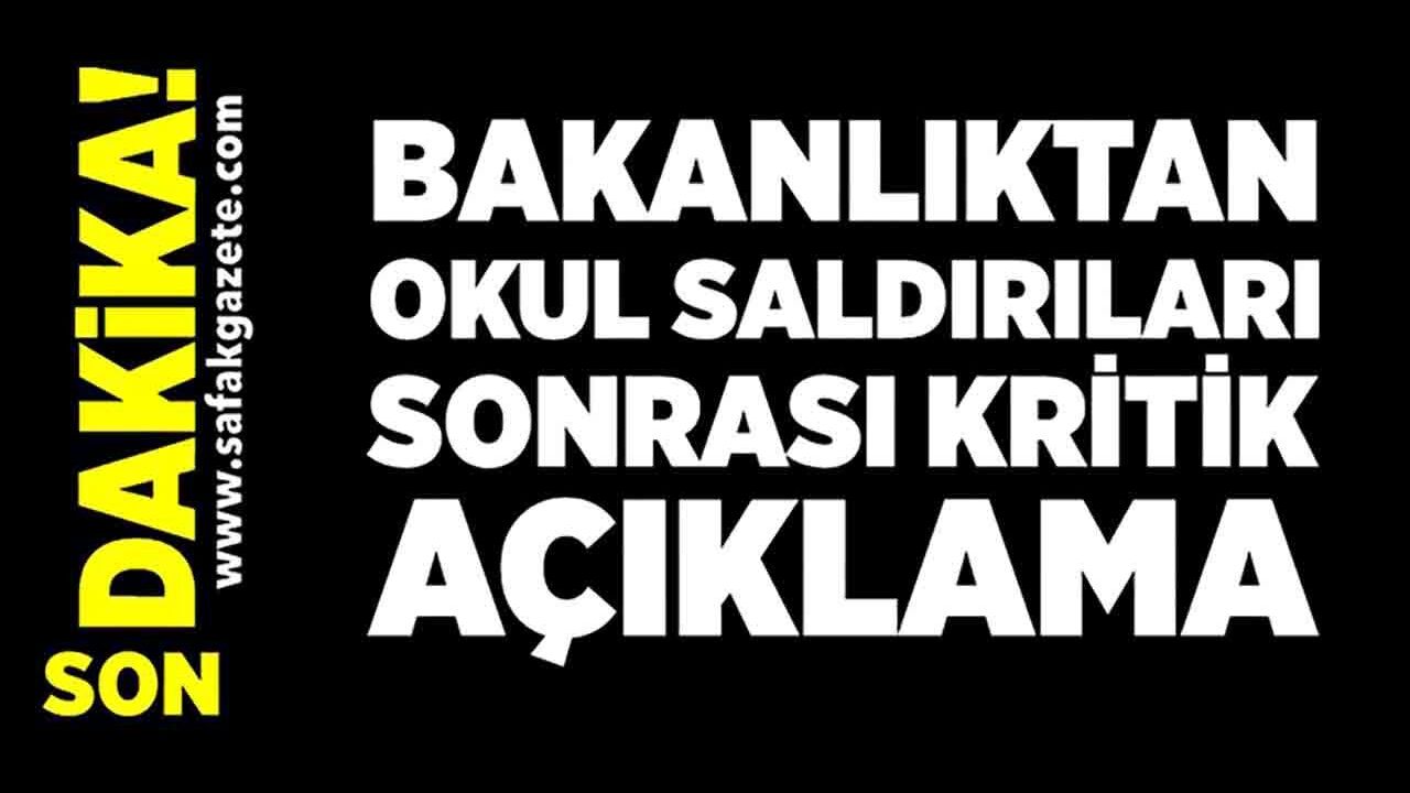 İçişleri Bakanlığı tarafından, Şanlıurfa ve Kahramanmaraş’ta yaşanan silahlı saldırı olaylarının ardından açıklama yapıldı. İçişleri Bakanlığı tarafından yapılan açıklamada, "Kahramanmaraş’ta bir okulumuzda meydana gelen silahlı saldırı, hepimizin yüreğini dağlamıştır. Bu elim hadisede hayatını kaybeden evlatlarımıza ve öğretmenimize Allah’tan rahmet; ailelerine, eğitim camiamıza ve aziz milletimize başsağlığı diliyoruz. Yaralı vatandaşlarımıza acil şifalar temenni ediyoruz. Olayın ilk anından itibaren devletimiz tüm kurumlarıyla birlikte sahadadır. Süreç; güvenlik, adli, idari ve eğitim boyutlarıyla çok yönlü ve titizlikle yürütülmektedir. İçişleri Bakanlığı olarak mülkiye ve polis başmüfettişlerimiz görevlendirilmiştir. Adli süreç, Adalet Bakanlığımızın koordinasyonunda hassasiyetle sürdürülmektedir. Millî Eğitim Bakanlığımız da dört başmüfettişle idari inceleme sürecini başlatmıştır. Aile ve Sosyal Politikalar Bakanlığımız, saldırıdan etkilenen yavrularımızın ve ailelerinin rehabilitasyon süreçlerini titizlikle yürütecektir" denildi.