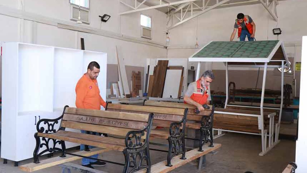 Belediye Başkanı Mehmet Canpolat'ın talimatlarıyla çalışmalarını sürdüren Kırsal Hizmetler Müdürlüğü, park ve yeşil alanları modern hale getirmek amacıyla üretim faaliyetlerini hızlandırdı. Metal, boyama ve ahşap atölyelerinde seri üretim yapan ekipler, kaynak ve boyama işlemleri tamamlanan ürünleri monte ederek parklara kazandırıyor.