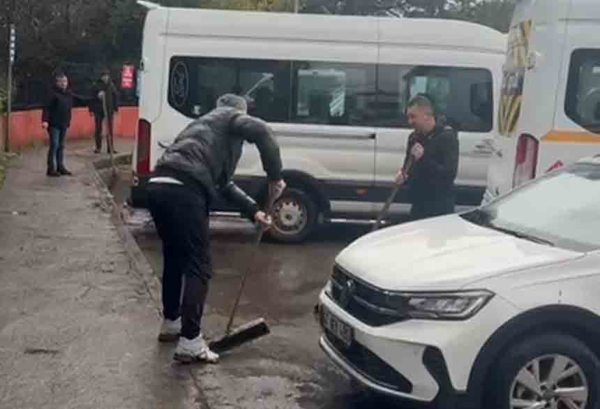 Oluşan gölet nedeniyle öğrenciler servis araçlarına binmekte güçlük yaşadı. Duruma müdahale edilmemesi üzerine servis şoförleri, öğrencilerin mağduriyetini gidermek için küreklerle logarları açtı.