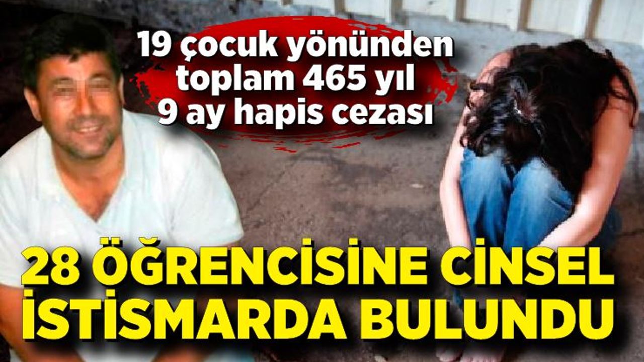 Antalya'da ilkokulda görev yaptığı dönemde 28 öğrencisine cinsel istismarda bulunduğu suçlamasıyla daha önce 636 yıl hapse mahkum edilen ve kararı Yargıtay tarafından kısmen bozulan öğretmen, yeniden görülen davada 19 çocuk yönünden toplam 465 yıl 9 ay hapis cezasına çarptırıldı.