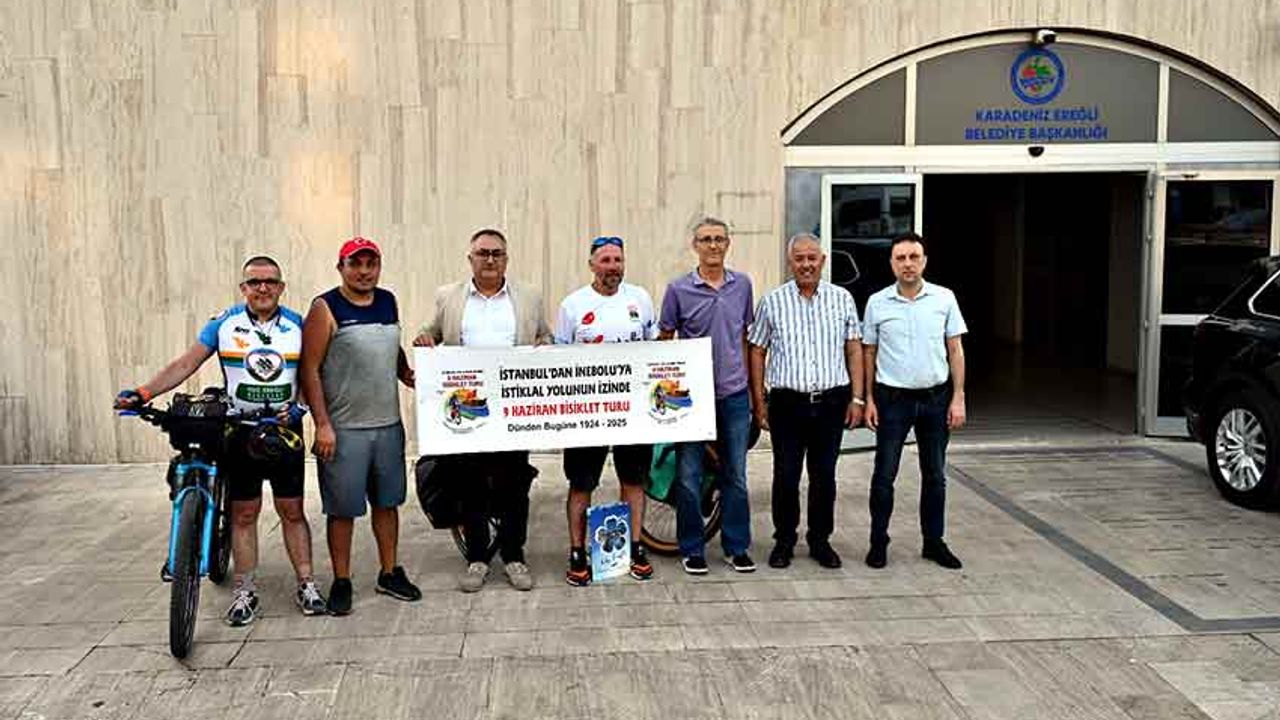 Belediye Başkan Yardımcısı Atilla Bulak ve Zabıta Müdürü Halit Aydın ve Veteriner İşleri Müdürü Erdal Terzi tarafından karşılanan bisikletçiler, amaçlarının 9 Haziran İnebolu Şeref ve Kahramanlık Günü’ne ulaşarak Milli Mücadele yıllarında İnebolu’ya silah ve cephane sevkiyatını unutturmamak olduğunu belirttiler.