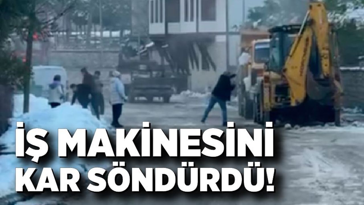 Karabük’ün Safranbolu ilçesinde bir iş makinesinde çıkan yangına vatandaşlar karla müdahale etmeye çalıştı. İtfaiye ekiplerinin hızlı müdahalesiyle yangın kontrol altına alındı.