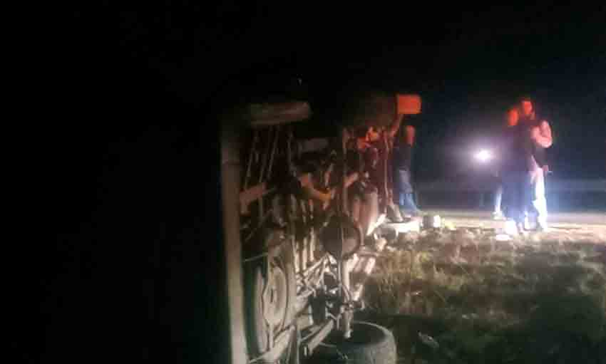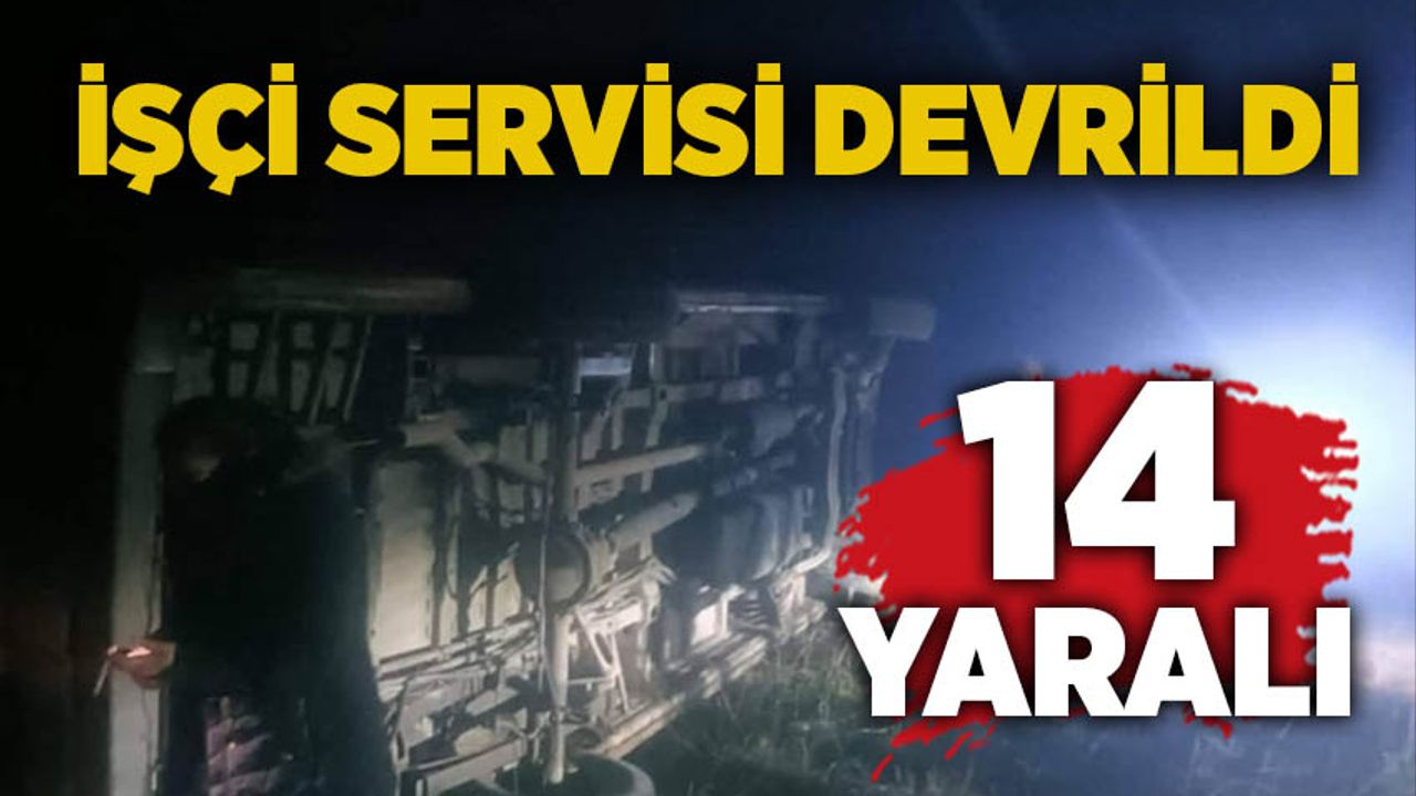 Ankara'nın Nallıhan ilçesinde işçileri taşıyan servisin yağmurdan ötürü kayganlaşan yolda kontrolden çıkarak devrildiği kazada 14 kişi yaralandı.
