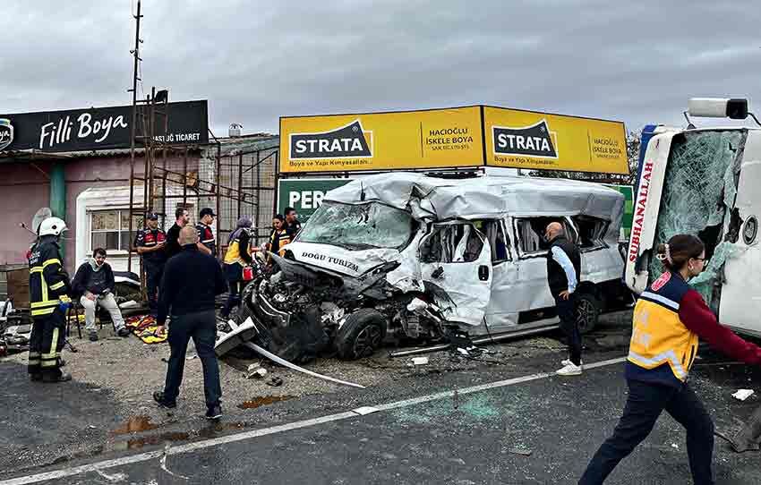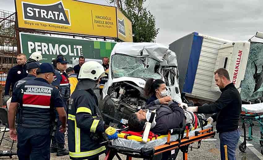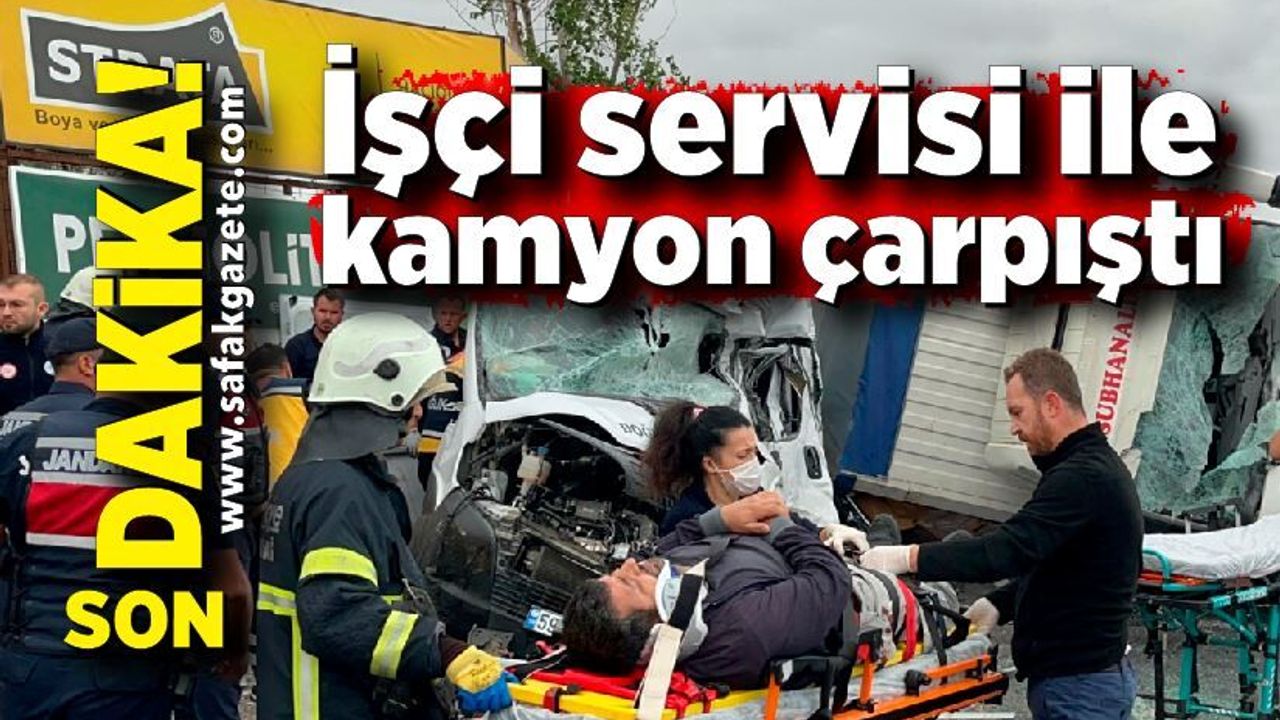 Tekirdağ’ın Ergene ilçesinde işçi servisi ile kamyon kafa kafaya çarpıştı, ilk belirlemelere göre çok sayıda kişi yaralandı.