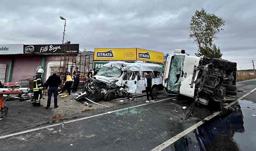 Ergene'nin Velimeşe Mahallesi’nde kaza sonrası olay yerine çok sayıda ambulans ve itfaiye ekibi sevk edildi. Yaralılar çevredeki hastanelere kaldırılırken, kaza nedeniyle bölgede ulaşımda aksama yaşandı.