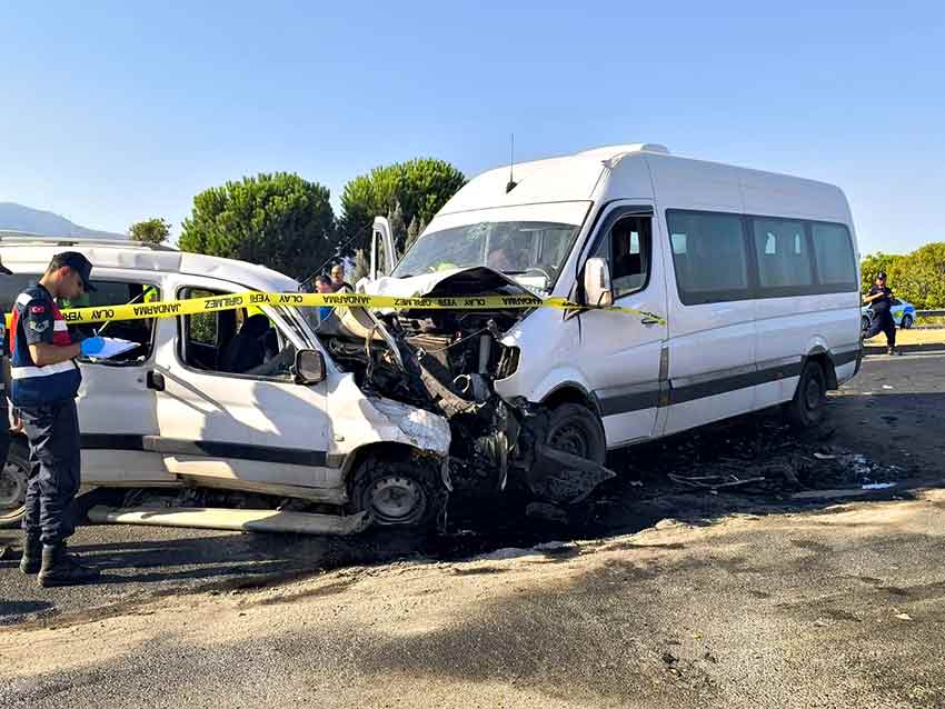 Kaza, sabah saat 08.00 sıralarında İzmir-Ankara Karayolu Armutlu mevkiinde meydana geldi. Edinilen bilgilere göre, Turgutlu yönüne ilerleyen Mehmet Budak (49) idaresindeki 49 ABE 666 plakalı tarım işçilerini taşıyan minibüs, henüz belirlenemeyen nedenle sürücüsünün direksiyon hakimiyetini kaybetmesiyle karşı yönden gelen Veysi Ekin (45) yönetimindeki 44 LS 968 plakalı hafif ticari araçla kafa kafaya çarpıştı.
