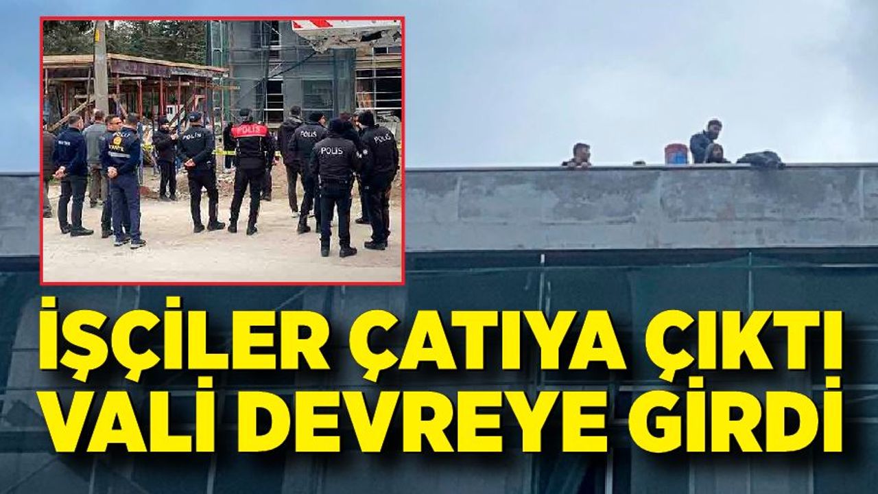 yaklaşık 1.5 yıldır devam eden bir okul inşaatında maaş alamadıklarını iddia eden 8 işçi, 3 aydır ödeme yapılmadığı gerekçesiyle inşaatın çatısına çıkarak eylem yaptı.