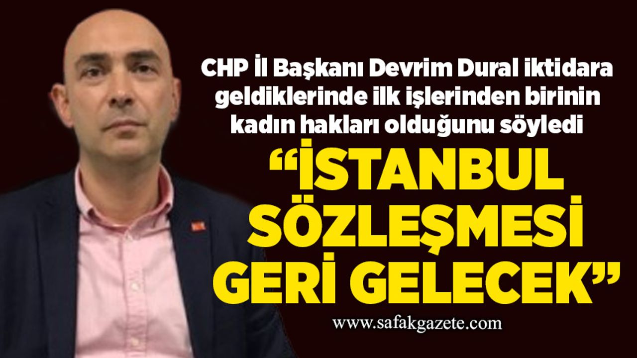 Başkan Dural ilk seçimde iktidar olacaklarının kesin olduğunu da vurgulayarak “devlet yönetimi görevini devraldığımızda ilk işlerimizden biri de Cumhurbaşkanınca tek taraflı olarak feshedilen İstanbul Sözleşmesini geri getirmek olacaktır” şeklinde konuştu.