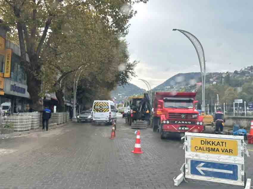Belediyeye bağlı Fen İşleri Müdürlüğü ekipleri, caddedeki bozuk parke taşlarını yenileyerek zemini düzeltme çalışmalarına başladı. Çalışmalar nedeniyle trafik geçici olarak tek şeritten sağlanıyor.