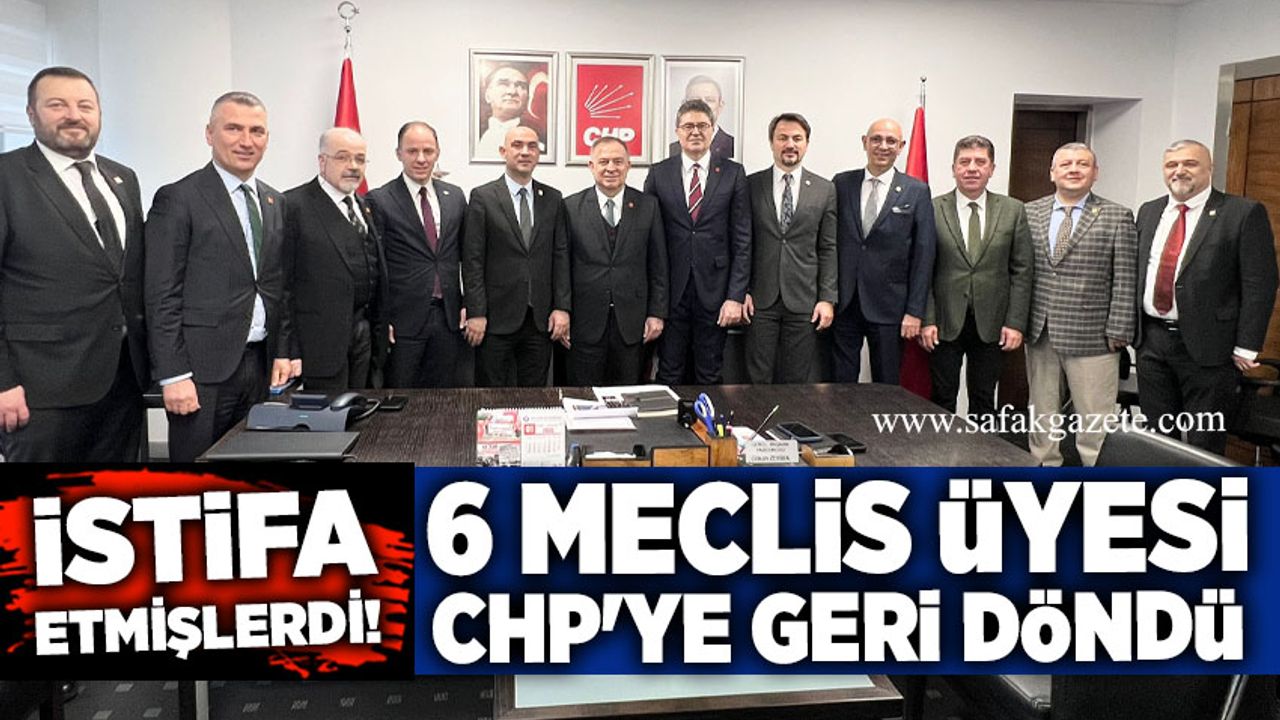Kdz. Ereğli Belediye Meclisi’nde yaşanan tartışmalar sonrası Cumhuriyet Halk Partisi’nden istifa eden Murat Yüce, Muharrem Sağlam, Murat Gürdal, Yıldıray Arslan, Mehmet Erdinç Sarmısak ve Ayhan Deniz, partilerine geri döndü. Meclis üyelerinin rozetleri CHP Genel Merkezi’nde düzenlenen törenle takıldı.