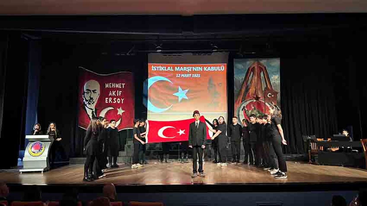 Programda Mehmet Akif Ersoy’un hayatını anlatan görsel sunumun ardından öğrenciler tarafından hazırlanan oratoryo sahnelendi. Müzik öğretmenlerinin piyano, keman ve yan flüt eşliğinde seslendirdiği eserler izleyenlere duygu dolu anlar yaşattı.
