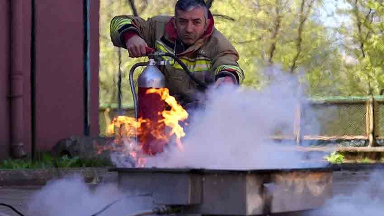 Eğitimde ilk olarak teorik bilgiler aktarılırken, daha sonra uygulamalı olarak yangın söndürme tüpü kullanımı ve müdahale yöntemleri gösterildi.