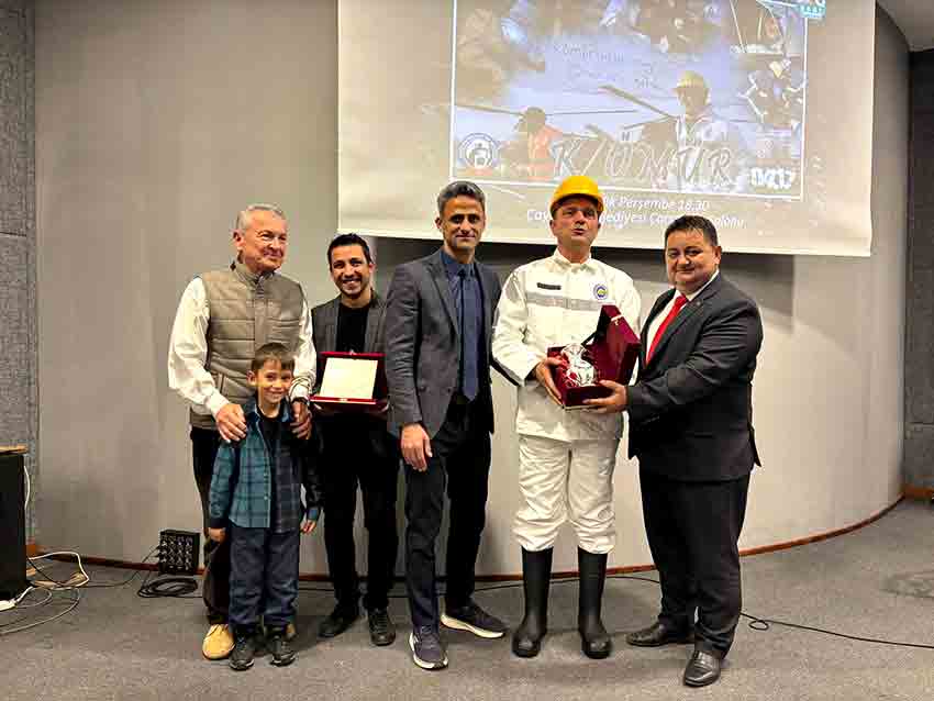 Kaymakam Kaya ile Belediye Başkanı Kantarcı, günün anısına GMİS Genel Başkanı Hakan Yeşil ve belgeselin yönetmeni Gürkay Gündoğan’a birer plaket ve hediye takdim etti. Yeşil, hediyeyi tüm madenciler adına belgeselde yer alan maden işçisi Murat Biçer'e verdi.