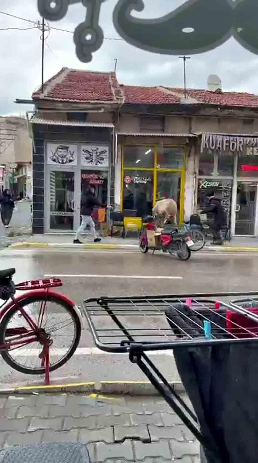 Afyonkarahisar’ın Bolvadin ilçesinde yaşanan ilginç olay, hem şaşırttı hem de güldürdü. Sahibinin elinden kaçan bir inek, ilçe merkezinde berber ve çay ocağına girmeye çalıştı.
