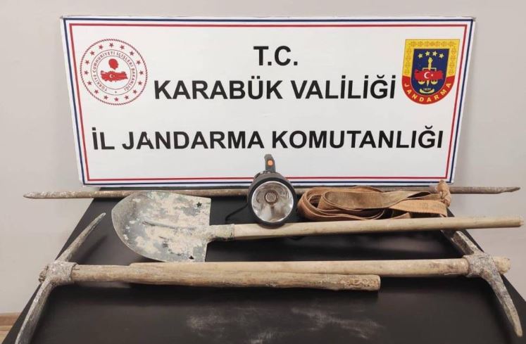 Şahıslar gözaltına alınırken, 2 adet kazma, birer adet kürek, manivela, kova, el feneri ve 5 metre halata da el konuldu.