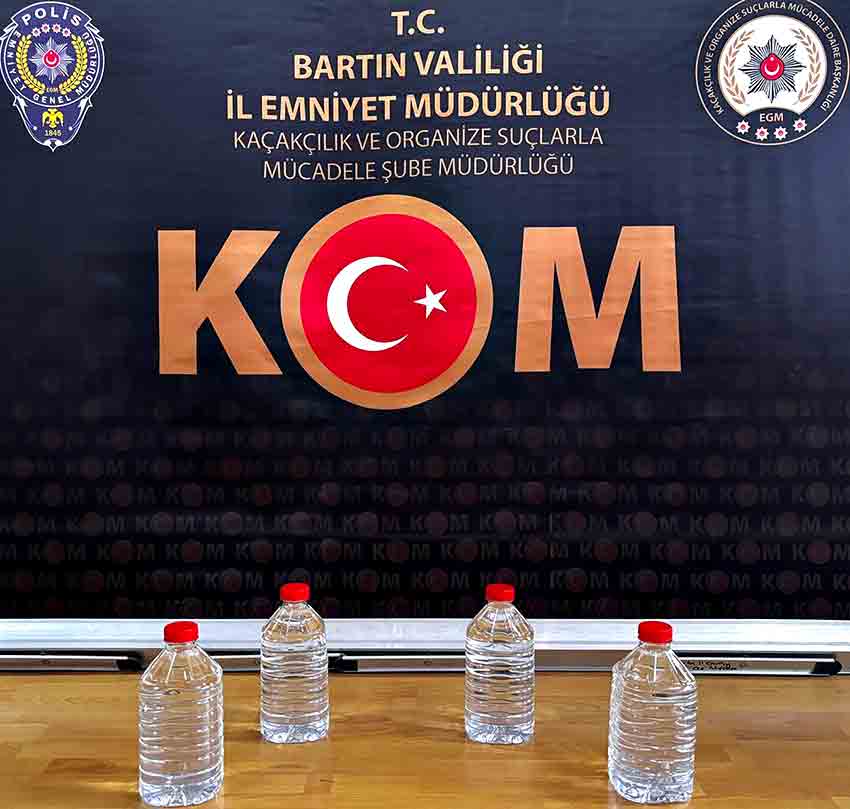 Yapılan aramalarda bir şahsın üzerinde ve adresinde 10 litre etil alkol bulundu.