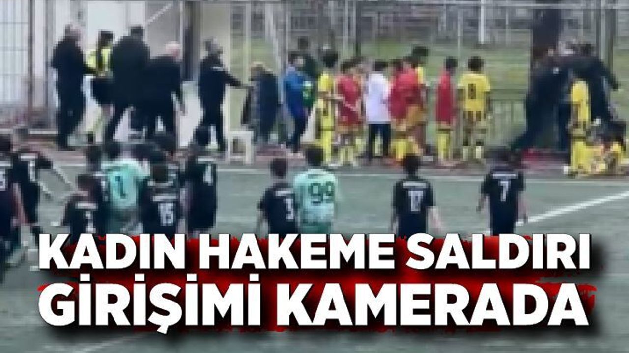 Kocaeli'nin Derince ilçesinde oynanan U11 Ligi müsabakasının ardından sahaya giren bir kişi, kadın hakeme saldırı girişiminde bulundu. O anlar tribündeki bir vatandaşın cep telefonu kamerasıyla kaydedildi.