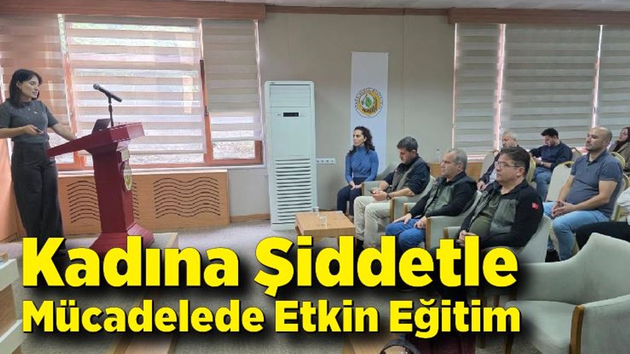 Orman Bölge Müdürlüğü Toplantı Salonunda düzenlenen Eğitimde, Zonguldak Aile ve Sosyal Hizmetler İl Müdürlüğü’ne bağlı ŞÖNİM (Şiddet Önleme ve İzleme Merkezi Müdürlüğü) uzmanları Kübra Tarı ve Pelin Çakar tarafından; kadına yönelik şiddet ve aile içi şiddet vakalarının önlenmesi, şiddet sonrasında izlenmesi gereken adımlar, başvuru mercileri ve KADES uygulaması hakkında bilgilendirmeler yapıldı.