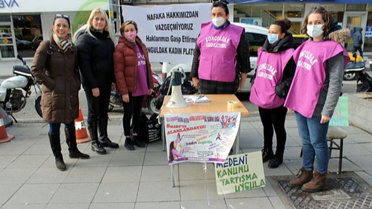 Zonguldak Kadın Platformu tarafından Gazi Paşa Caddesinde kurulan stantta “Nafaka hakkımızdan vazgeçmiyoruz, haklarımızı gasp ettirmeyiz” denildi.