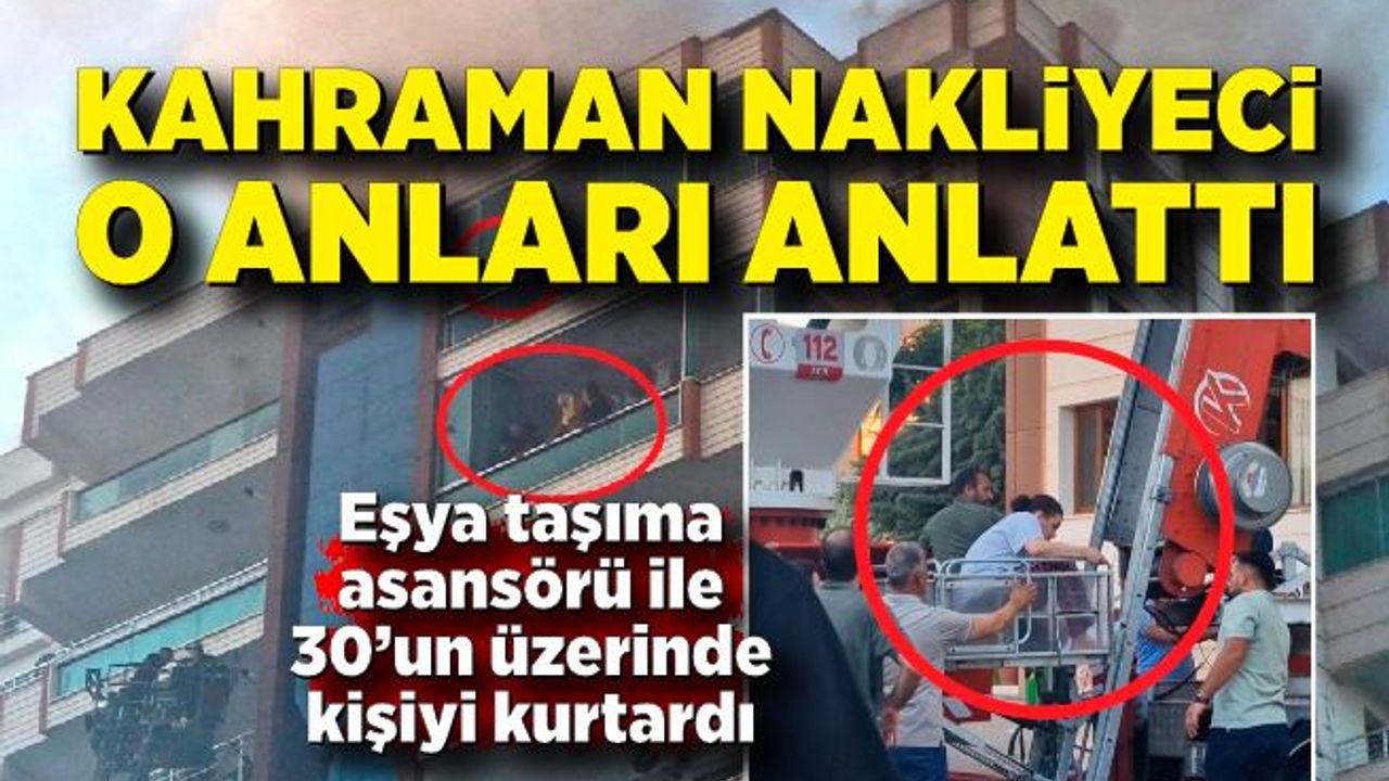 Eşya taşıma asansörü ile 30’un üzerinde kişiyi kurtaran nakliyeci Emrullah Eligün, kendisine haber verilir verilmez hızla olay yerine gittiğini belirterek, “Ben market alışverişine gitmiştim. Akrabam olan Tuncay beni aradı. Dedi ki acilen asansörü getir. Dayımların evinde yangın çıkmış. Kurtarmamız lazım. Ben alışverişimi hemen orada bir mobilyacı arkadaşın yanına bıraktım. Koşarak geldim aracımın yanına. Tuncay da bana yetişti. Ara sokaklardan gittik oraya. Yani Tuncay'ı kırmayayım diye dedim gideyim. Çünkü izin vermezler bu tür şeylerde. Hani bu asansör ne ki? İzin vermezler diye düşündük. Ama gittiğimizde can pazarı vardı. Anlatırken de zorlanıyorum. Ben hayatımda böyle bir şey görmedim. İnsanlar çaresizdi. Yangın her tarafı sarmış. Herkes balkonlarda kurtarılmayı bekliyor. İtfaiye sol cephedekilerini kurtarıyordu. Zaten onun dışında pek bir seçeneğim yoktu. Sağ cepheyi ben boşalttım. Ondan sonra arka cepheye gittim, boşalttım. Sonra başka bir cepheye gittim. Orayı da boşalttım. Yaşlı teyzeleri, dayıları, kaç tane çocuk, kaç tane hanım arkadaşı kurtardık. Yani o ara ne başardığımın farkında bile değildim. Bu makinemi gören bütün eş dostlar aradı. ‘Allah razı olsun senden’ dediler. Daha önce hiç böyle bir şey başıma gelmedi. Deprem zamanında böyle bir kargaşa yaşadık. Yani o diyor önce benim eşyamı kurtar, o diyor önce benim eşyamı kurtar. Bu böyle bir şey değildi. İnsanlar ağlıyordu, çaresizdi. Birbirleriyle kavga edecek insanlar gördüm. Birbirleriyle kavga ettiler. O dedi önce benimkini, o dedi önce benimkini kurtar diye. Kimseyi dinlemedim, dinlesem daha az kişiyi kurtarmış olurduk. En üstten başlayıp aşağı doğru geldim. Çünkü onlar sistemi bilmiyor” diye konuştu.