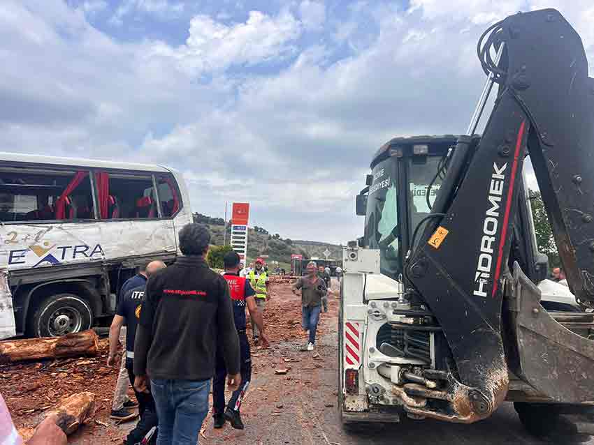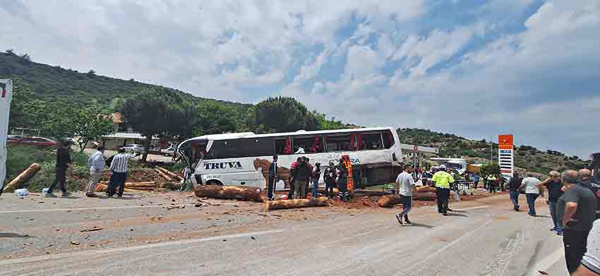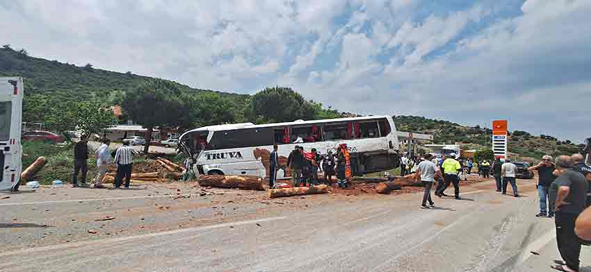 Çanakkale'de Truva Turizm'e ait yolcu otobüsü ile tomruk yüklü kamyon ve bir de otomobilin karıştığı kazada ilk belirlemelere göre 6 kişi hayatını kaybetti. Çok sayıda kişi yaralandı.