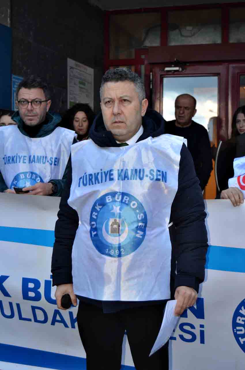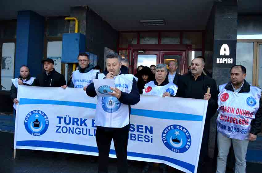 Türk Büro Sen Zonguldak İl Başkanı Köksal Tunçtürk, Sosyal Güvenlik İl Müdürlüğü önünde yaptığı açıklamada, “ Türk Büro-Sen olarak bugün, 81 ilimizde eş zamanlı yaptığımız basın açıklamalarıyla; görevi başında hunharca katledilen görev şehidimiz Avukat Zekeriya Polat’ı rahmetle anıyor, ailesinin ve mesai arkadaşlarının acısını en derinden paylaşıyoruz. Aynı zamanda kamu görevlilerine yönelen şiddeti, tehdidi ve yıldırma girişimlerini bir kez daha en güçlü ifadelerle lanetliyoruz” dedi.