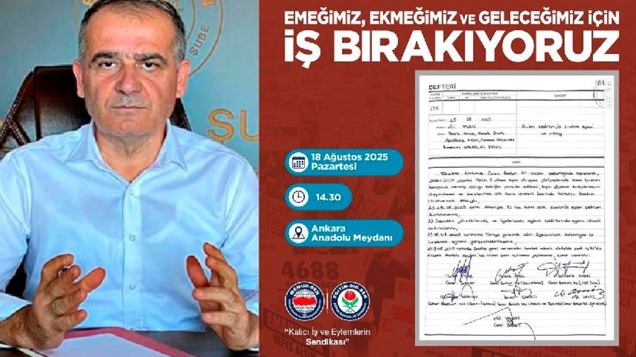 Memur Sen konfederasyonu ve Eğitim Bir Sen olarak 18 Ağustos 2025 Pazartesi günü emek ve üretimden gelen gücümüzü harekete geçiriyor ve ülke genelinde iş bırakıyoruz !