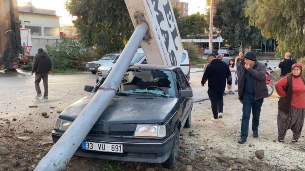 Kamyon önce bir elektrik direğine, ardından bir otelin dev tabelasına çarptı. Tabela, yol kenarında park halindeki otomobilin üzerine devrildi ve araçta ciddi hasar oluştu.