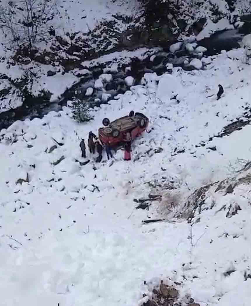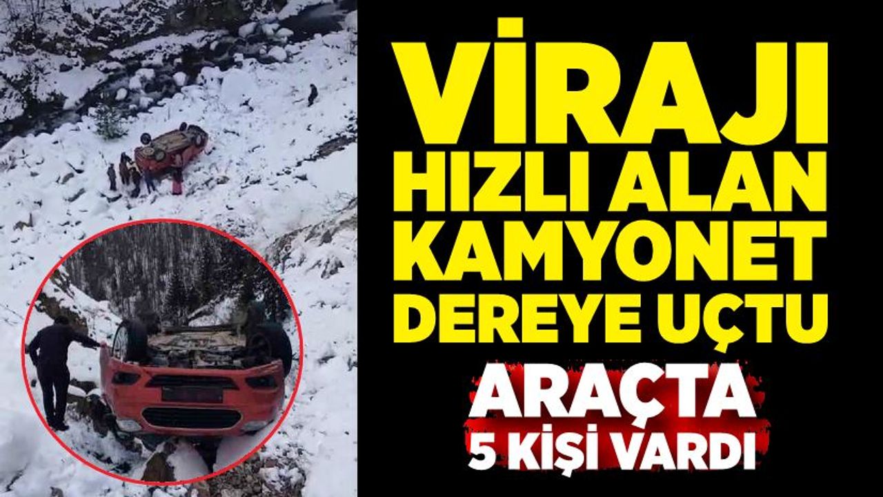 Gümüşhane’nin Kürtün ilçesinde karlı yolda kontrolden çıkan kamyonet dere yatağına devrildi. Kazada 5 kişi yaralandı, birinin durumu ağır.
