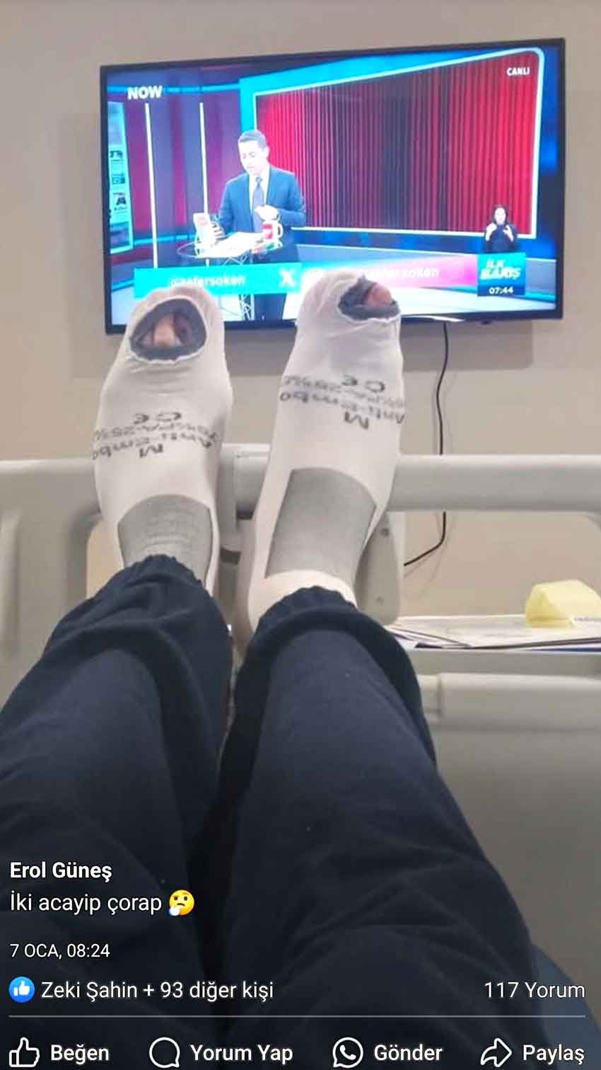 Kanser tedavisi gören CHP Kozcağız Belde Başkanı ve Eski Kozcağız Belediyesi Zabıta Müdürü Erol Güneş, tedavi gördüğü hastanede vefat etti. Bolu'da vefat ettiği öğrenilen Güneş'in vefatından saatler öncesinde, tedavi gördüğü hastanede ayağına giydirilen çorapların resimleri paylaştı. "İki acayip çorap" notuyla sosyal medyadan yayınladığı resim, son paylaşımı oldu.