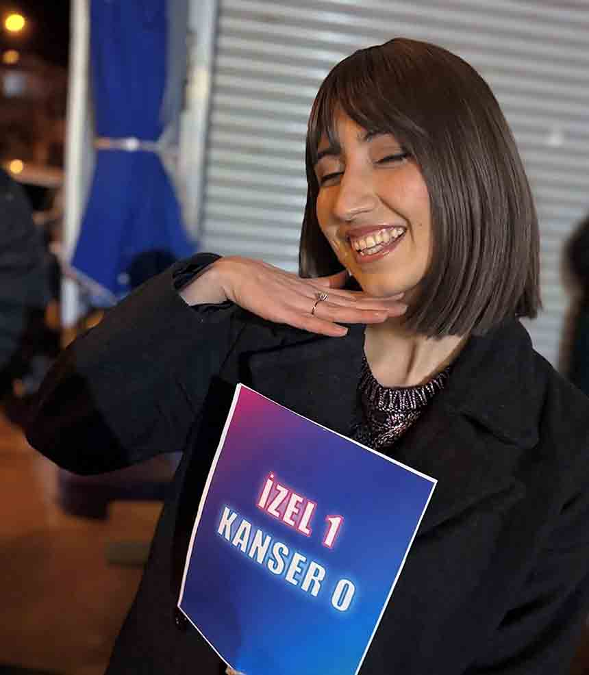 Kutlama sırasında elinde “Kanser 0, İzel 1” yazılı döviz taşıyan Usta, yaşadığı süreci duygusal sözlerle anlattı.