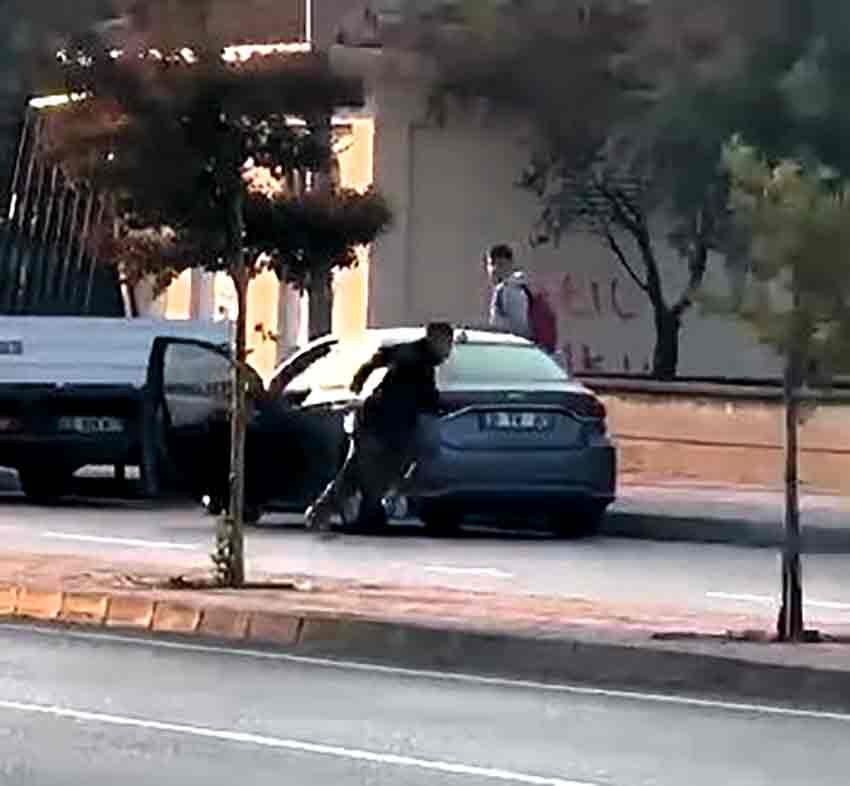 Saldırgan, elbisesinin altına gizlediği tabancayla müdür F.Ö.'ye ateş ettikten sonra hızla olay yerinden kaçtı. Dehşet anları ise bir arkadaşı tarafından cep telefonuyla kaydedildi. Olay sonrası sağlık ekipleri bölgeye sevk edilirken, yaralı müdür ambulansla hastaneye kaldırıldı.