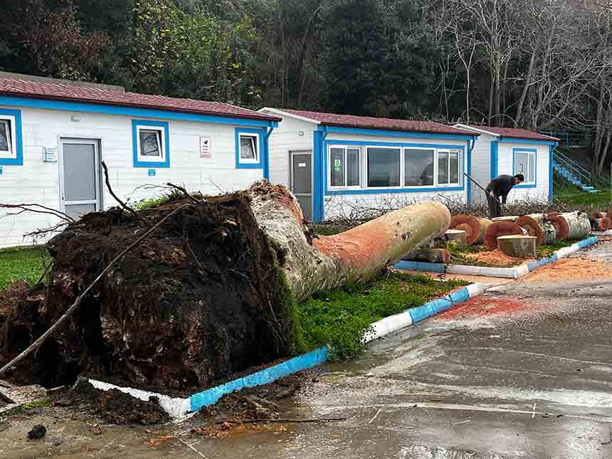 Zonguldak’ta etkisini gösteren kuvvetli rüzgâr, kentte olumsuzluklara yol açtı. Şehrin en gözde plajlarından biri olan Kapuz Plajı’nda, fırtına nedeniyle büyük bir ağaç devrildi.