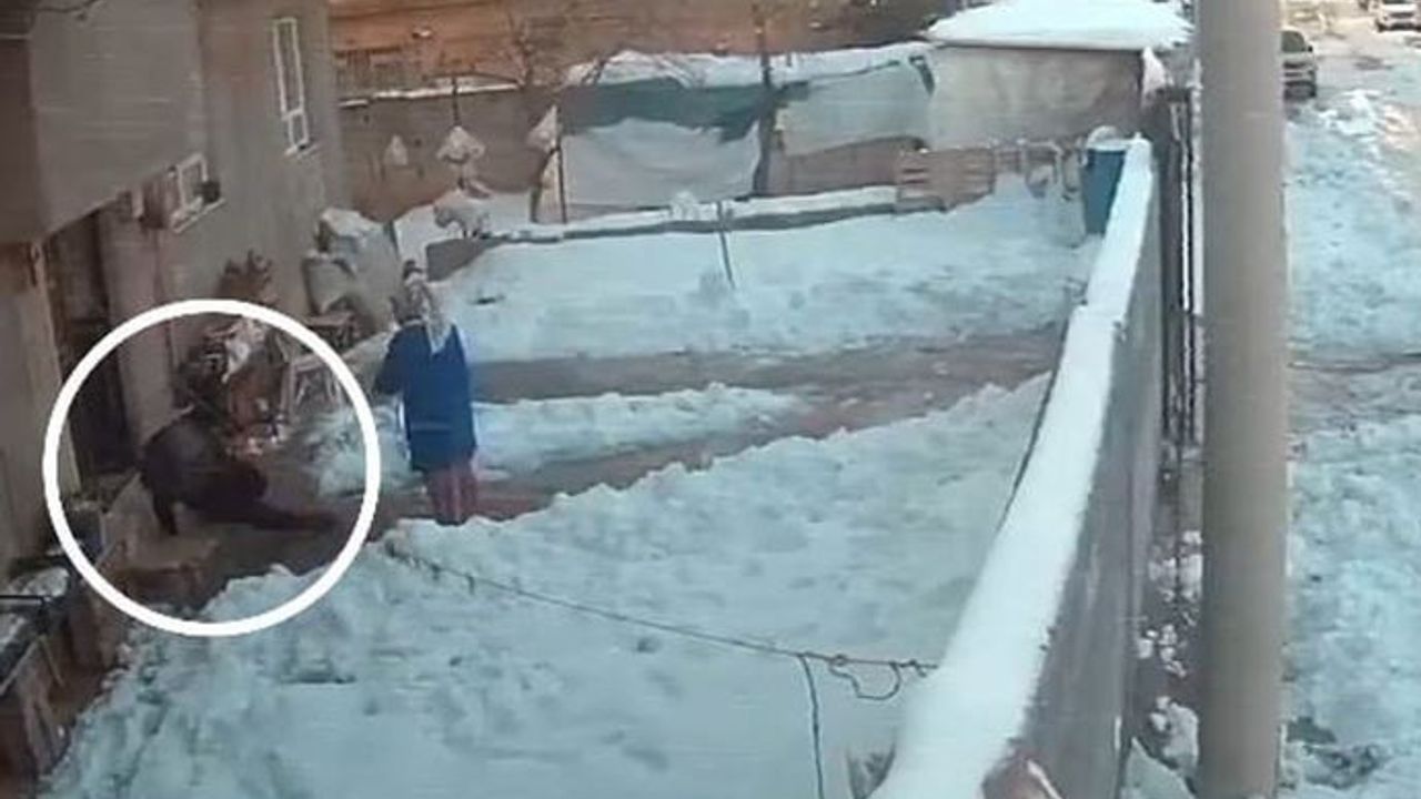 Şanlıurfa’nın Hilvan ilçesinde iki gün önce başlayan yoğun kar yağışı, hayatı etkilerken bir evin önünde ilginç görüntüler ortaya çıktı. Evden dışarı çıkan hane sakinlerinin adım atar atmaz buzlu zeminde kayarak düştüğü anlar, evin güvenlik kamerasına yansıdı.