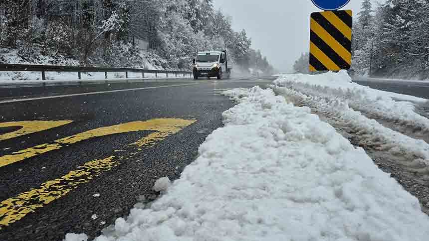Karayolları ekipleri kar yağışında trafiğin olumsuz etkilenmemesi için kar küreme araçlarıyla yol boyunca devriye yaparken diğer taraftan sis nedeniyle yol kenarında bulunan sis lambaları da yakılarak sürücülerin dikkatli olması sağlanıyor.