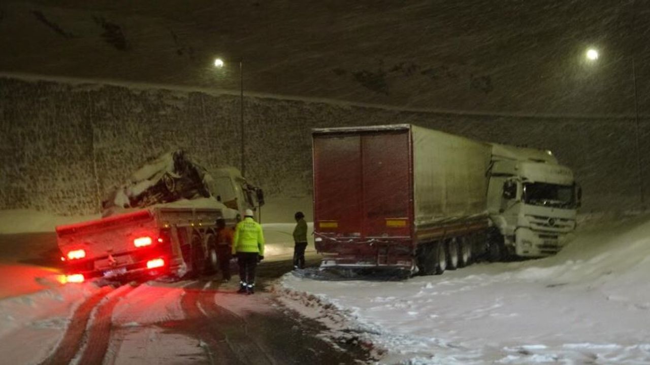 Olay sonrası yardım için çağrılan çekici, karla kaplı zeminde ilerlemekte zorlanarak kara saplandı. Kısa sürede olay yerine gelen trafik ekipleri, hem yan dönen tırı hem de kara saplanan çekiciyi kurtarmak için çalışmalara başladı.