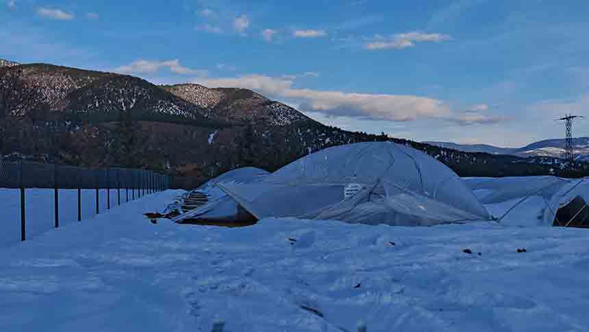 Eskipazar ilçesinde kısa sürede etkisini artıran yoğun kar yağışı, sera alanlarında ağır hasara neden oldu. Yaklaşık 50 dönümlük alanda bulunan seralar, kar yüküne dayanamayarak çöktü. Güvenlik kamerası görüntülerinde, seraların bir anda çökme anı net şekilde görülüyor.