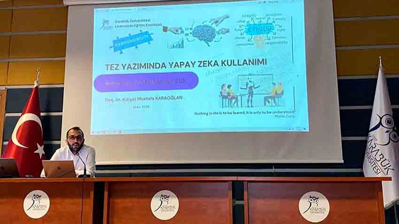 Karabük Üniversitesi (KBÜ) Lisansüstü Eğitim Enstitüsü tarafından düzenlenen seminerde, tez yazımında yapay zekâ kullanımının avantajları, sınırlamaları ve etik boyutları ele alındı.