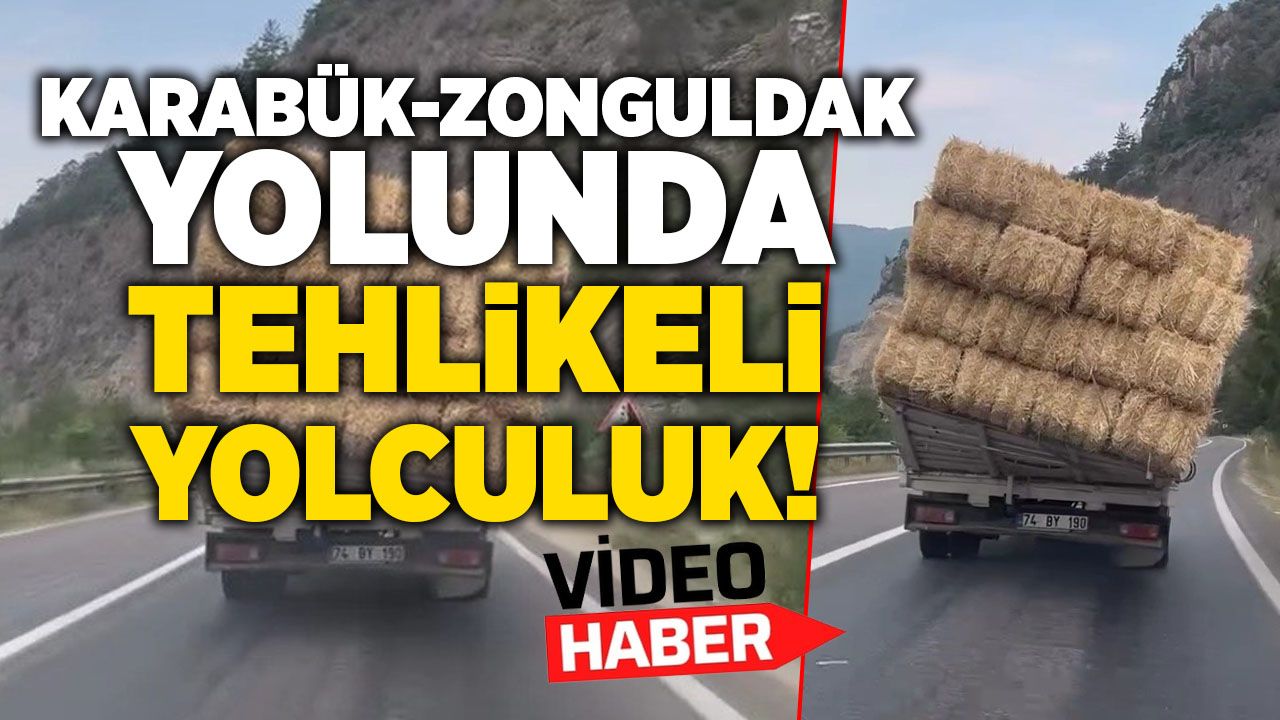 Karabük-Zonguldak kara yolunda saman yüklü kamyonun dengesiz ve eğik şekilde ilerlemesi trafikte panik yarattı. Yol güvenliğini tehdit eden anlar başka bir sürücü tarafından saniye saniye görüntülendi.