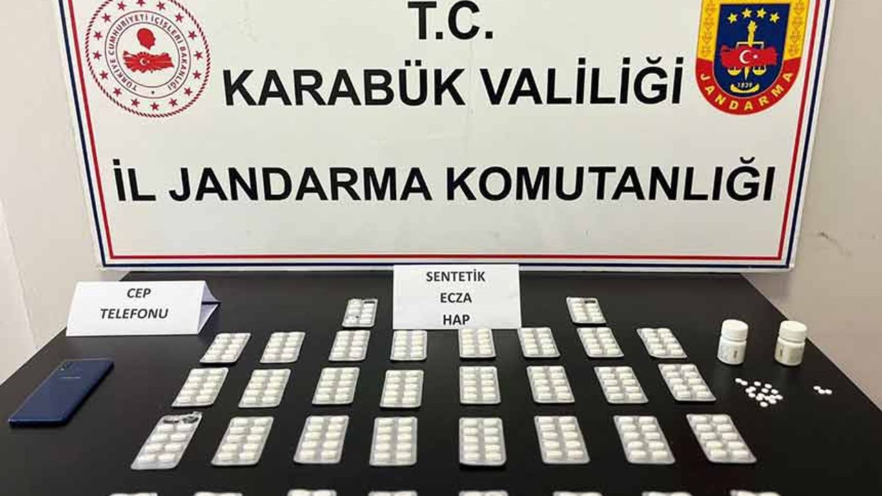 Karabük İl Jandarma Komutanlığı ekiplerince savcılık koordinesinde il merkezinde icra edilen operasyonda, şüpheli bir şahsın üzerinde ve eşyalarında yapılan aramada 353 sentetik ecza hap ele geçirildi. Olayla ilgili bir adet cep telefonuna da inceleme amacıyla el konulurken, şüpheli şahıs işlemlerinin ardından adliyeye sevk edildi.