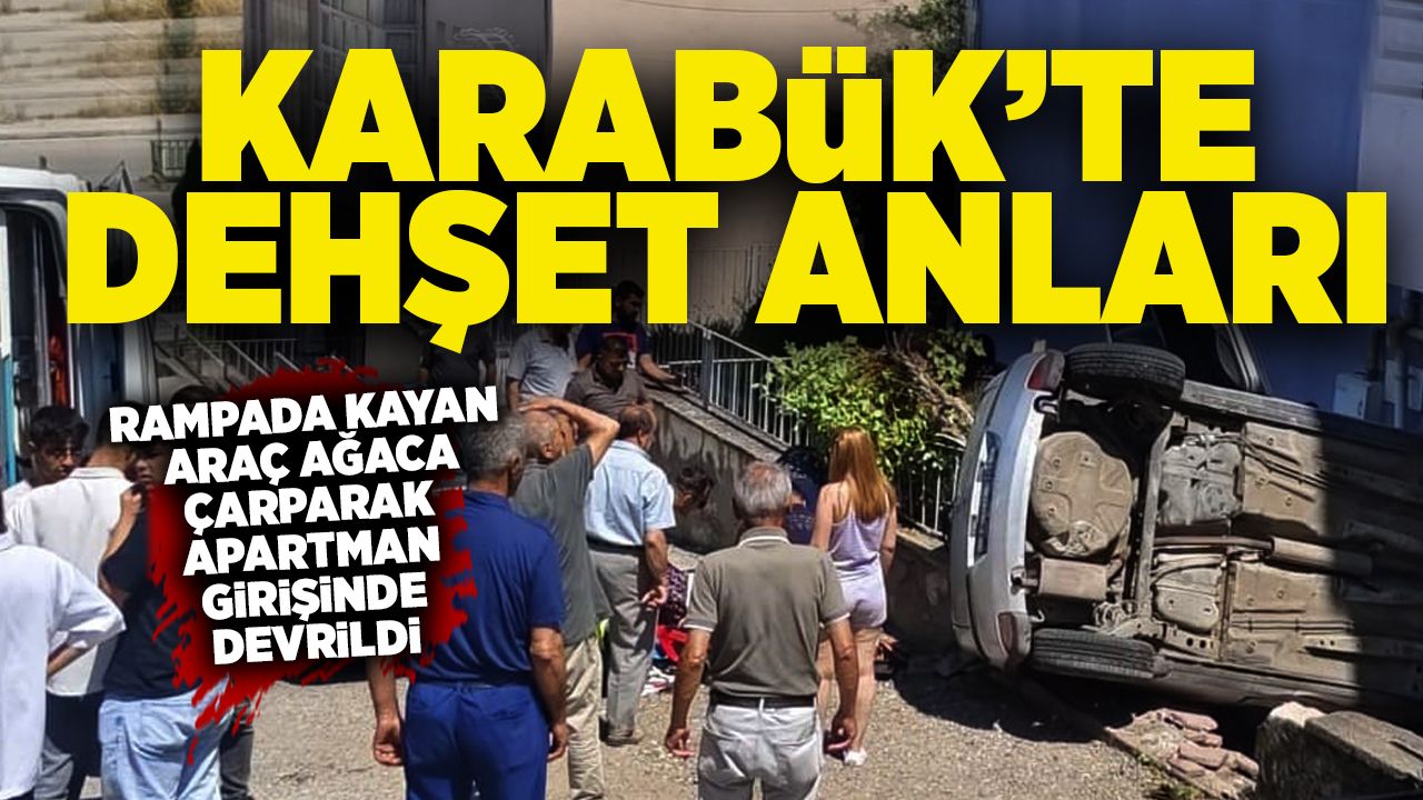 Karabük’te rampa aşağıya kayan otomobil ağaca çarptıktan sonra bir apartmanın girişinde devrildi. Kazada otomobilde bulunan 5 kişi yaralandı.