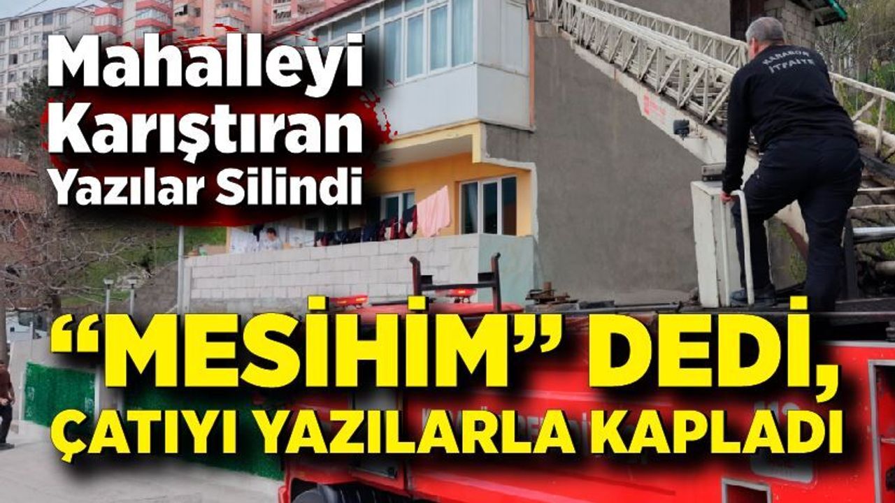 Edinilen bilgiye göre, Bayır Mahalle Bağlar Sokak'ta M.D. (61) isimli şahsın ikamet ettiği evin çatısına ve çevresine "Peygamber' "66", "Mesih", "İsa" ve "35" gibi çeşitli yazılar yazıldığını gören vatandaşların ihbarı üzerine olay yerine polis ve zabıta ekipleri sevk edildi. Ekipler, görüştükleri ev sahibi M.D.'den söz konusu yazıları kaldırmasını talep etti. Şahsın tepki göstermesinin ardından yazılar boya yardımıyla silinerek kaldırıldı.