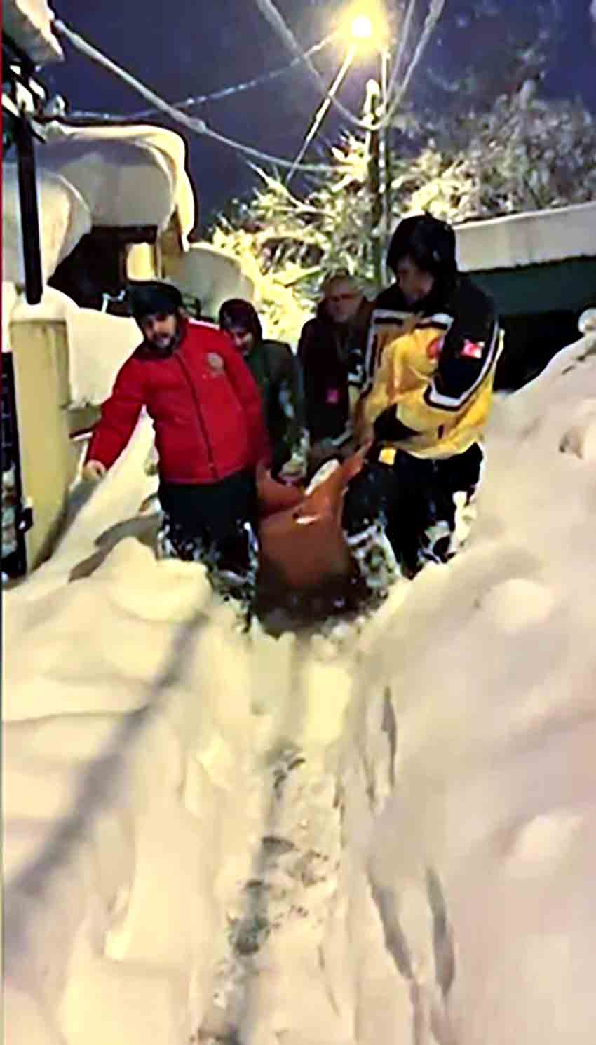Olay, Safranbolu ilçesine bağlı Esentepe Mahallesi Kırçiçeği Sokak'ta meydana geldi. Edinilen bilgiye göre, evinde rahatsızlanan 88 yaşındaki Pakize Arslan için yakınları 112 Acil Çağrı Merkezi'nden yardım istedi. İhbar üzerine bölgeye sevk edilen sağlık ekipleri, kar kalınlığının yaklaşık 80 santimetreye ulaştığı mahallede hastaya güçlükle ulaştı. Ekipler tarafından sedyeyle ambulansa kadar yaklaşık 100 metre taşınan yaşlı kadın, ilk müdahalesinin ardından Safranbolu Devlet Hastanesi'ne kaldırıldı. Arslan'ın tedavisinin hastanede sürdüğü öğrenildi.