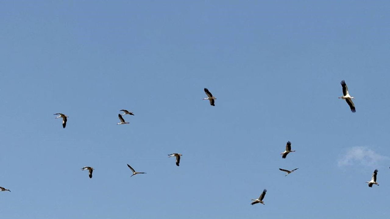 Çok sayıda leylek Soğanlı Çayı’nı mesken tuttu. Bir arada çayda bekleyen leylekler dron ile görüntülendi. Görüntülerde, onlarca leyleğin çay kenarında dinlendiği ve birlikte uçtuğu anlar yer aldı.